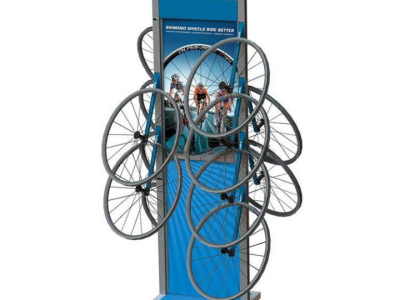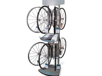 Perfect for showcasing bicycle tires, rims, and wheel accessories in shops, malls, and exhibitions. -
