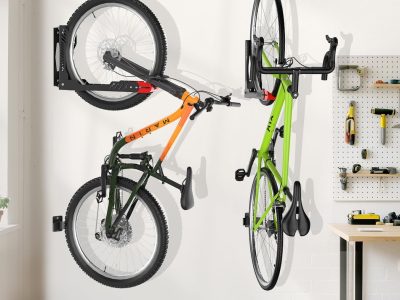 Easy to install with the included mounting kit, this 2-pack wall mount provides a practical, space-saving, and safe solution for indoor bike storage in garages, tool rooms, apartments, or shops.