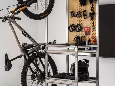 Integrated Storage Cabinet: Provides additional room for tools, cycling accessories, gear, and maintenance essentials.