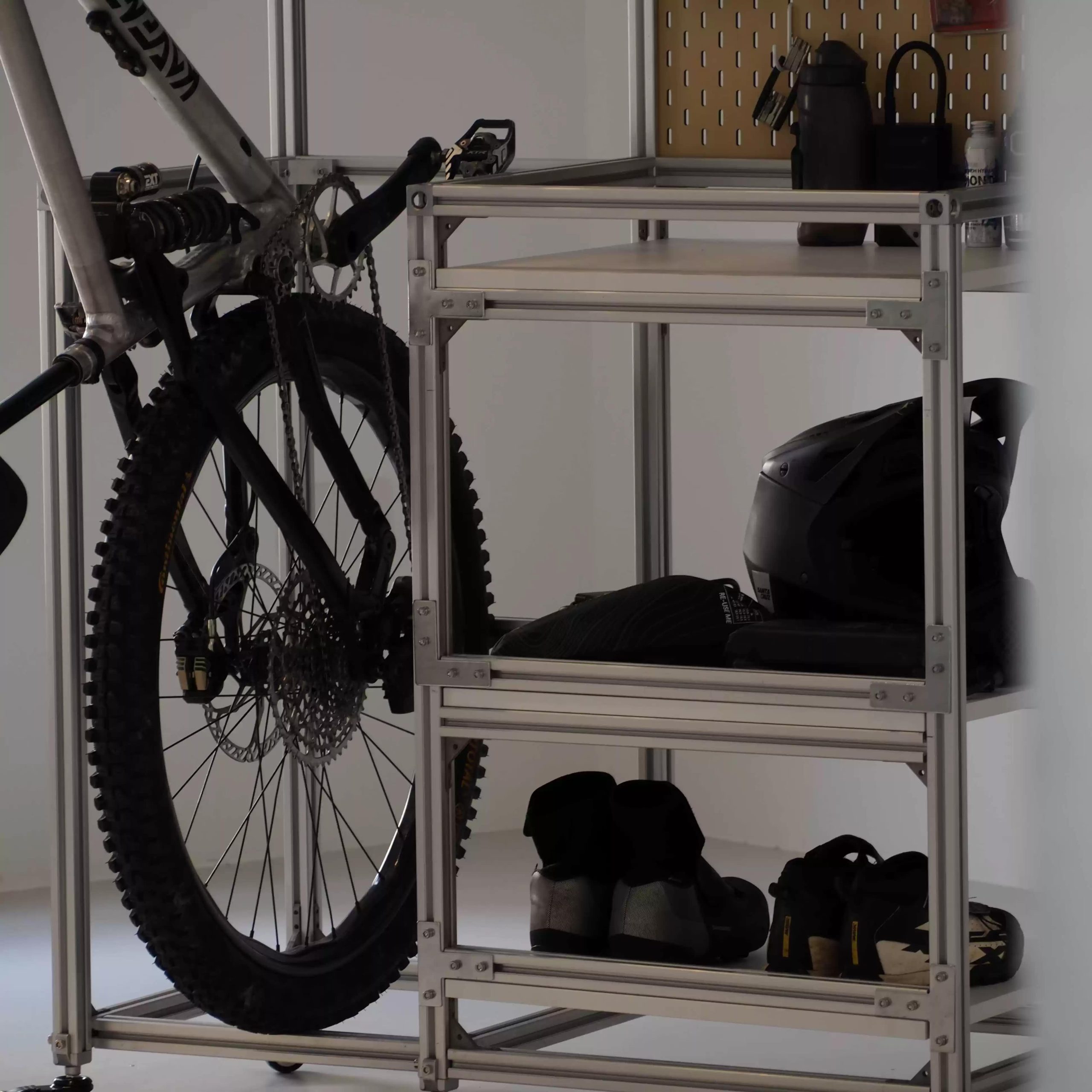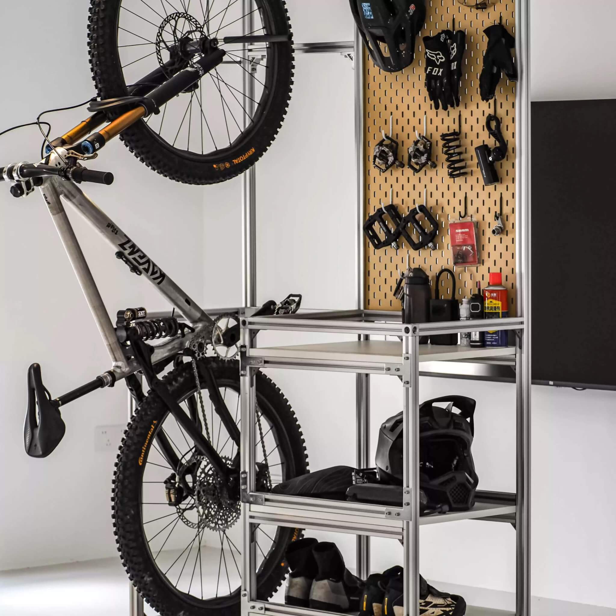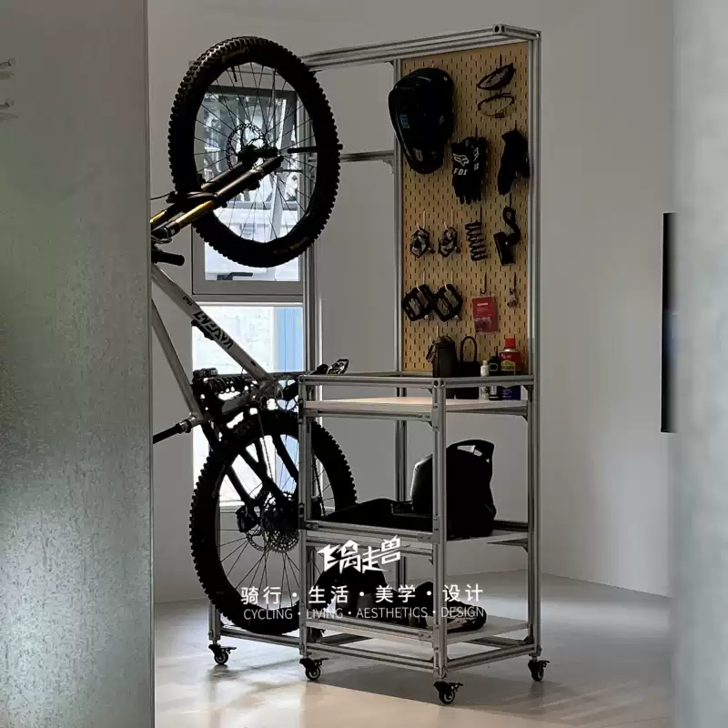 Choose this DIY Aluminum Bicycle Storage Cabinet Display Rack for its modern design, multifunctional storage capability, movable structure, and durable aluminum construction—offering a professional and organized solution for displaying and storing your bicycle.