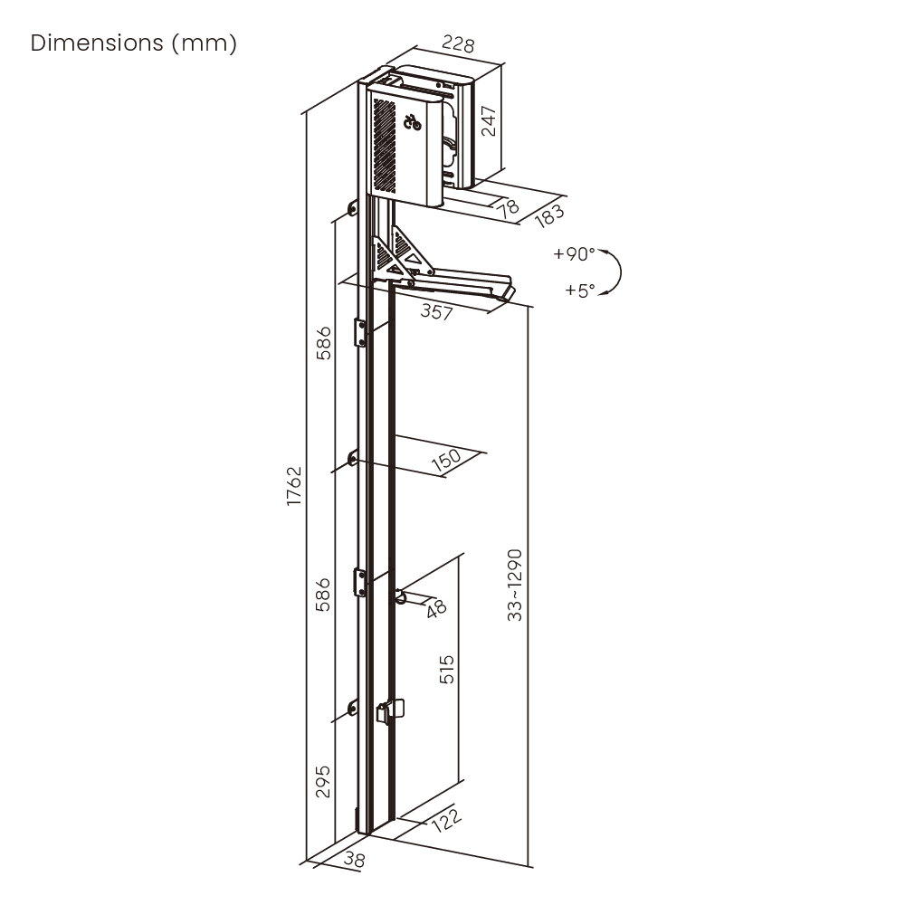 Size: 357 x 183 x 1762 mm (14.1″ x 7.2″ x 69.4″)