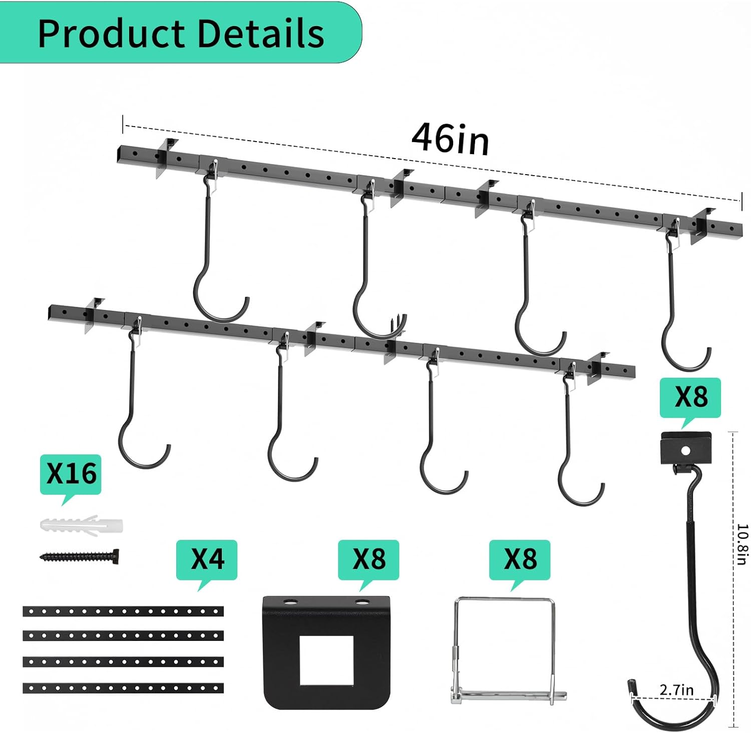 Powder-coated metal rails and rubber-cased hooks protect your wheels from scratches. The secure locking design keeps the hooks in place and prevents them from falling off.