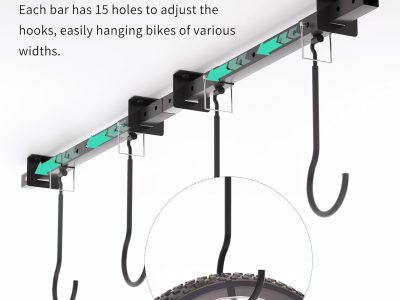 You can adjust the hook spacing to match your bike’s width. In addition, the swiveling arm lets you hang different bike sizes. The hook opening measures 2.7 inches, so please check your wheel width before purchasing.