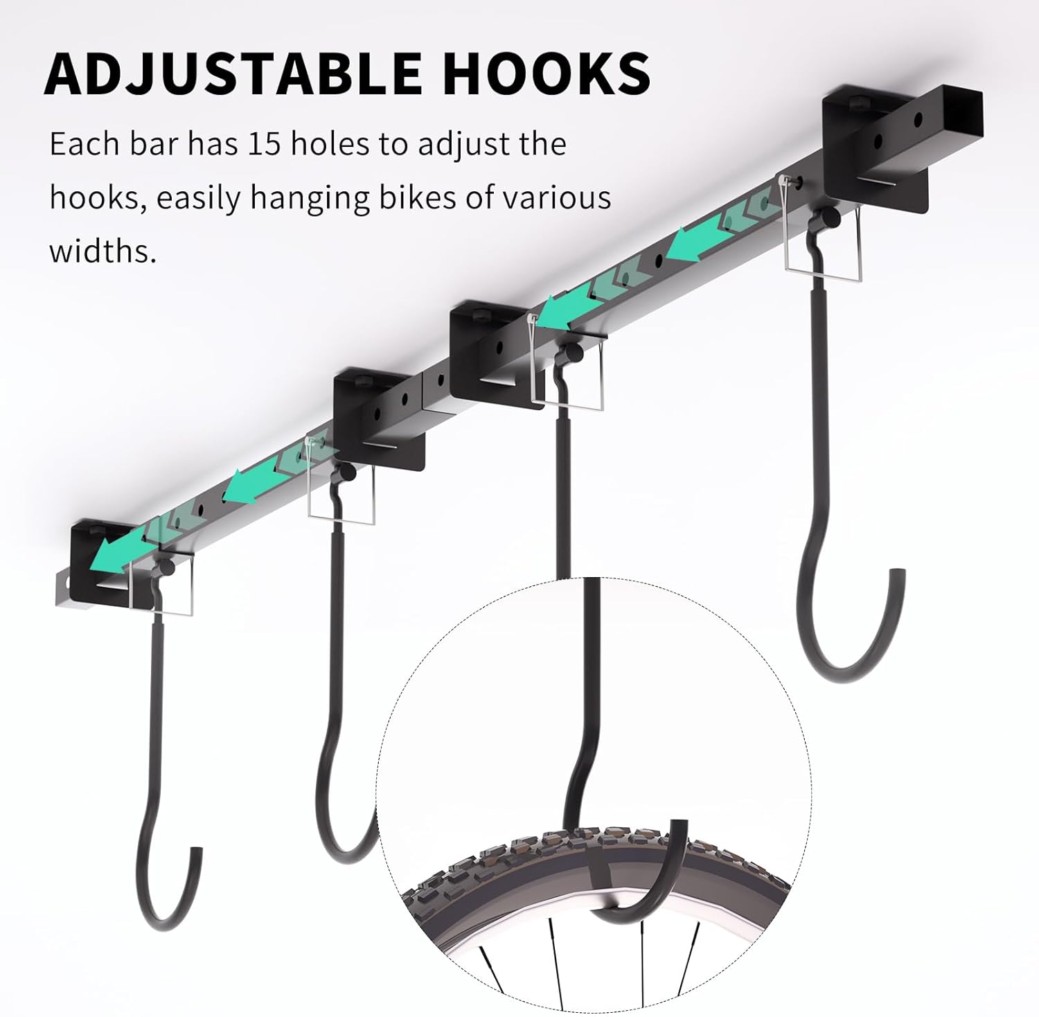 Echaprey Bike Hangers for Garage Bike Storage Rack Ceiling Mount Indoor Metal Bike Rack Hanger Garage Home Storage 8 Adjustable Bike Hooks for 4 to 8 Bicycles, Holds Up to 250lbs