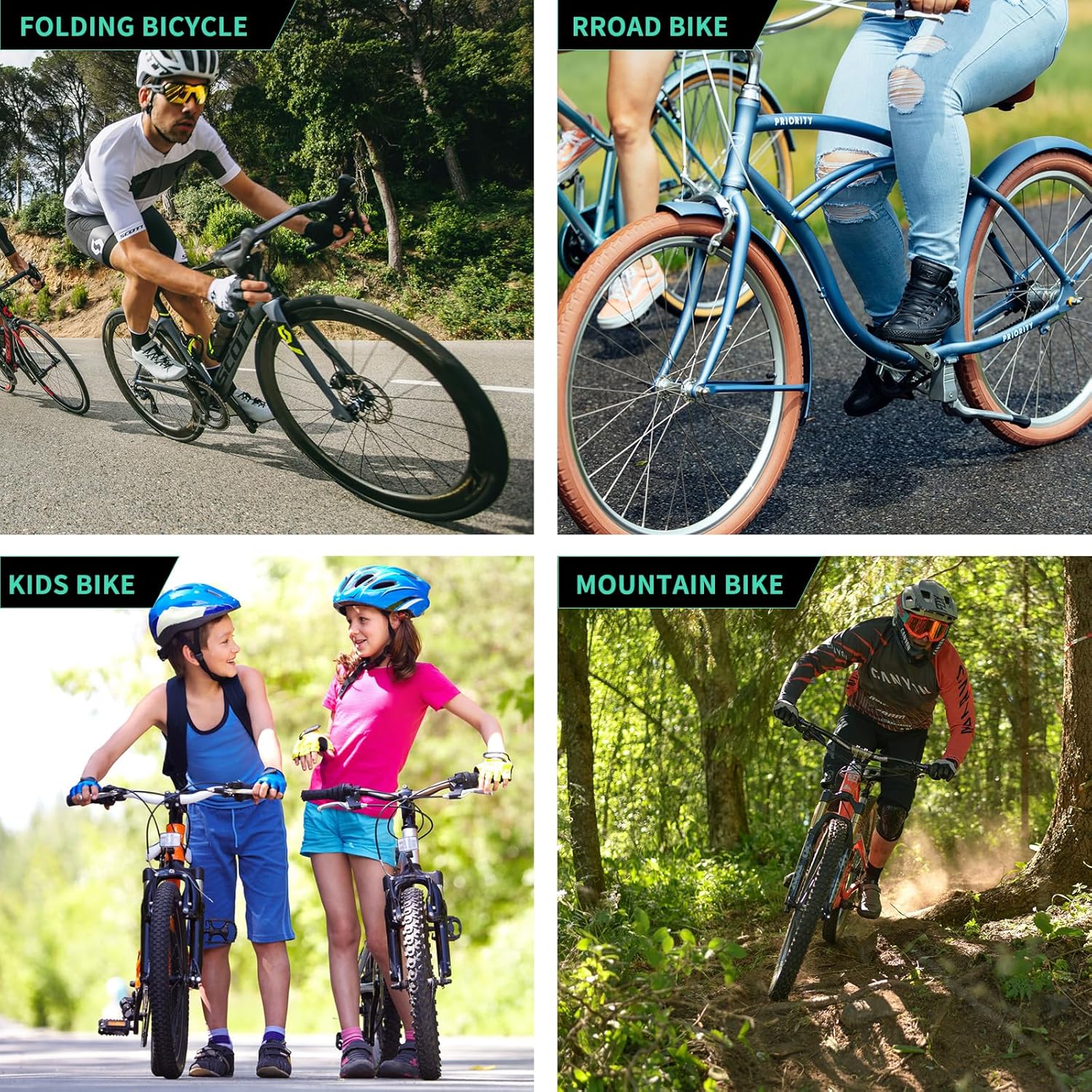 • 【Easy to Use】No need punch or mount,the upright bike stand will standing on your floor without any wobbly risk.With gift wheel fixing band to hold the front wheel in place,even a kids can store the bicycle easy.The vertical bike rack is not suit the bike with fender and backrack.