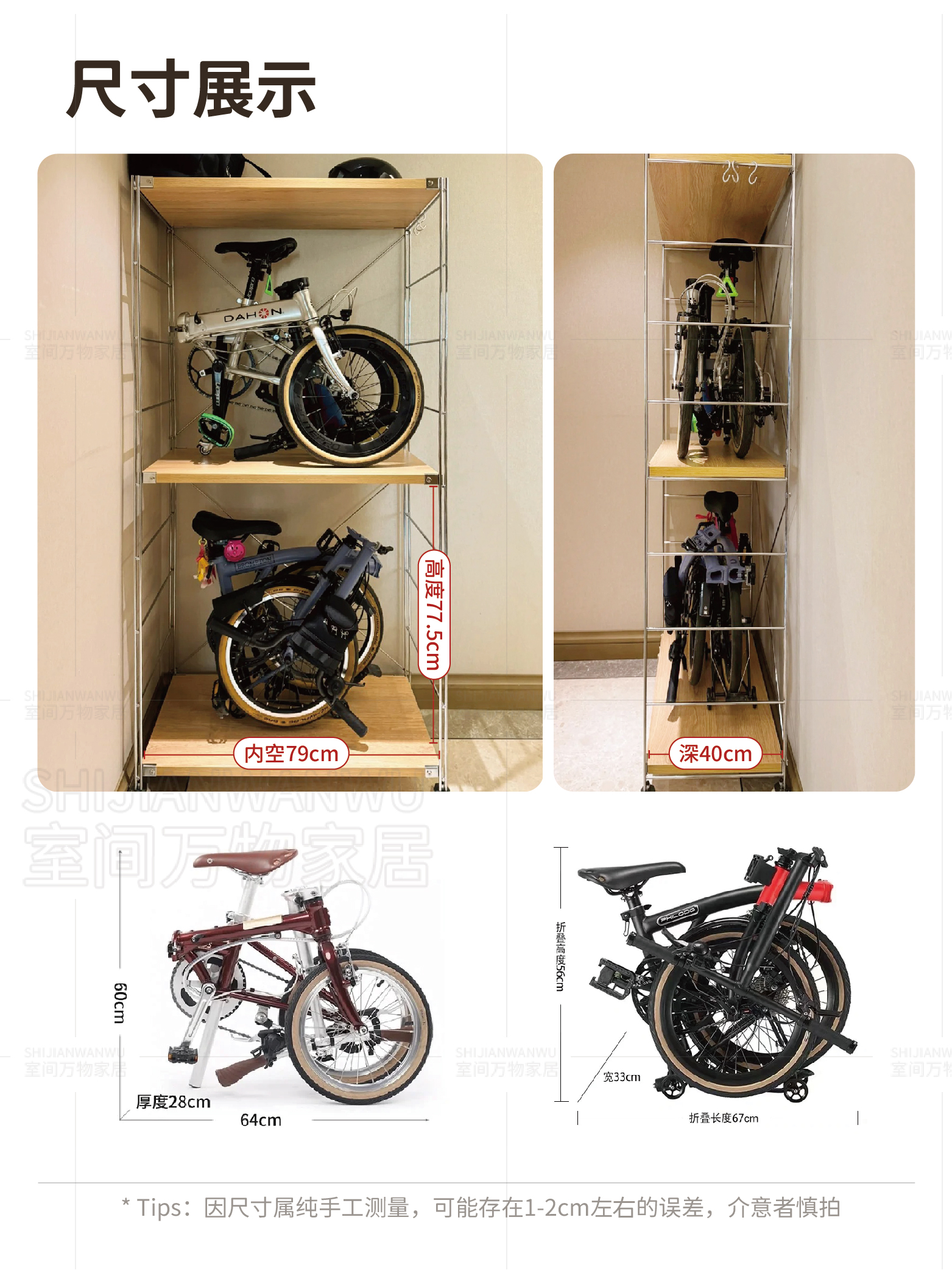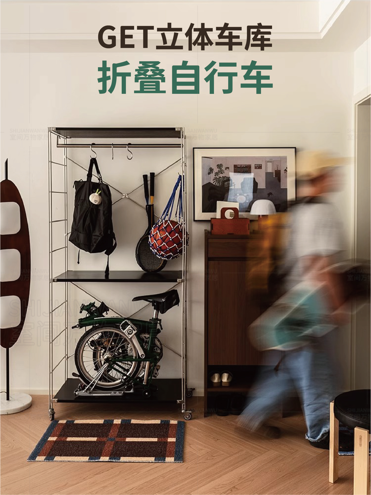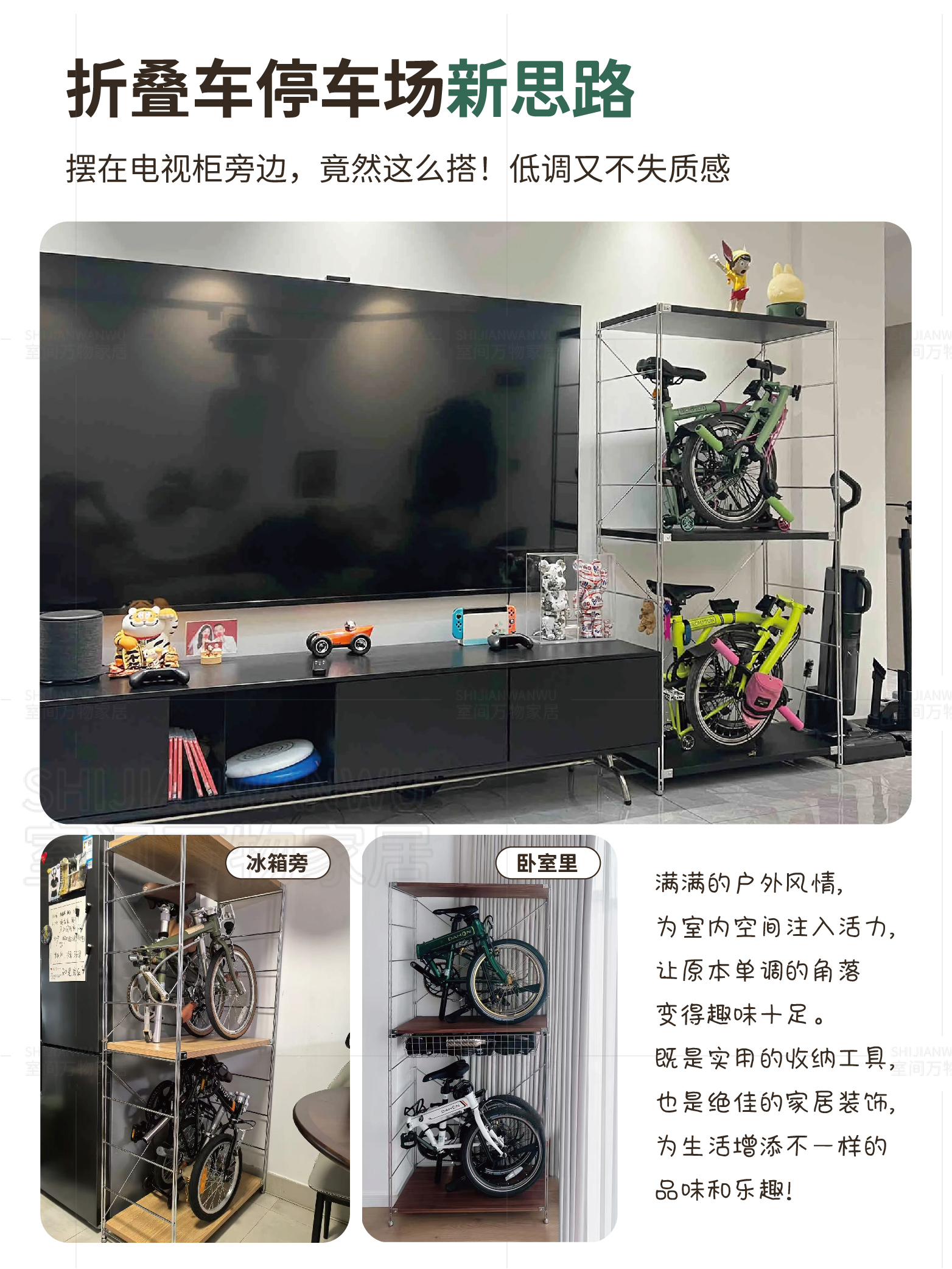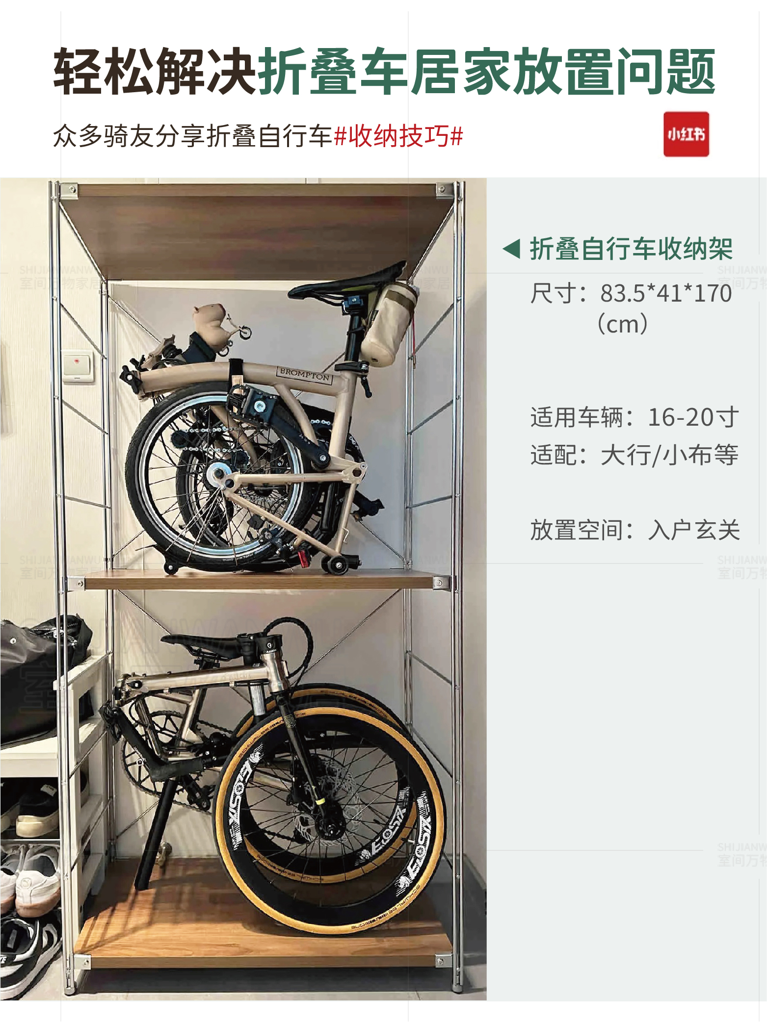 Multi-Layer Vertical Storage: Designed to hold bikes and accessories efficiently within a small footprint.