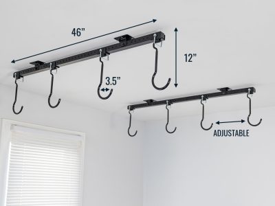 • Easily adjust hook positions along the bar, then secure in place with heavy-duty gated pins