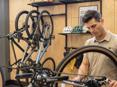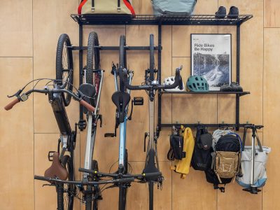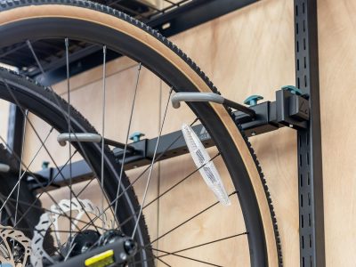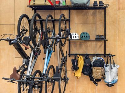 Wall-mounted system saves floor space and keeps bikes neatly organized