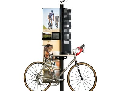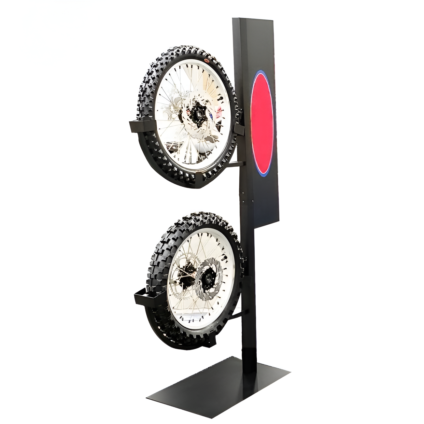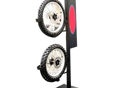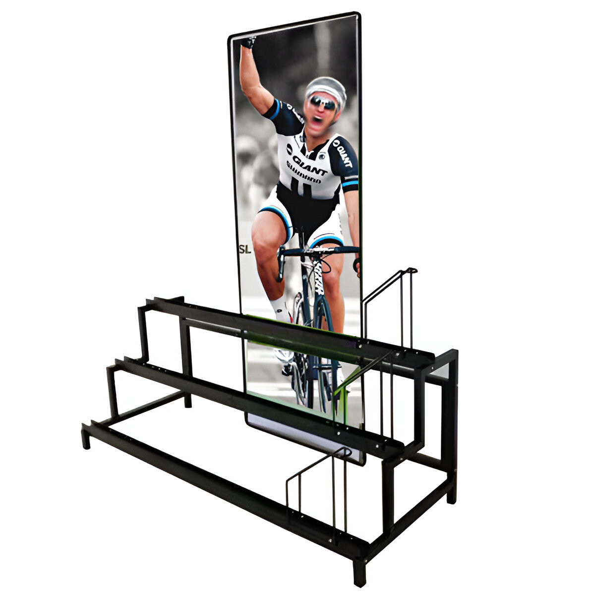 Perfect for showcasing bikes in retail environments, exhibitions, trade shows, and sports shops, offering a clean and organized presentation. -