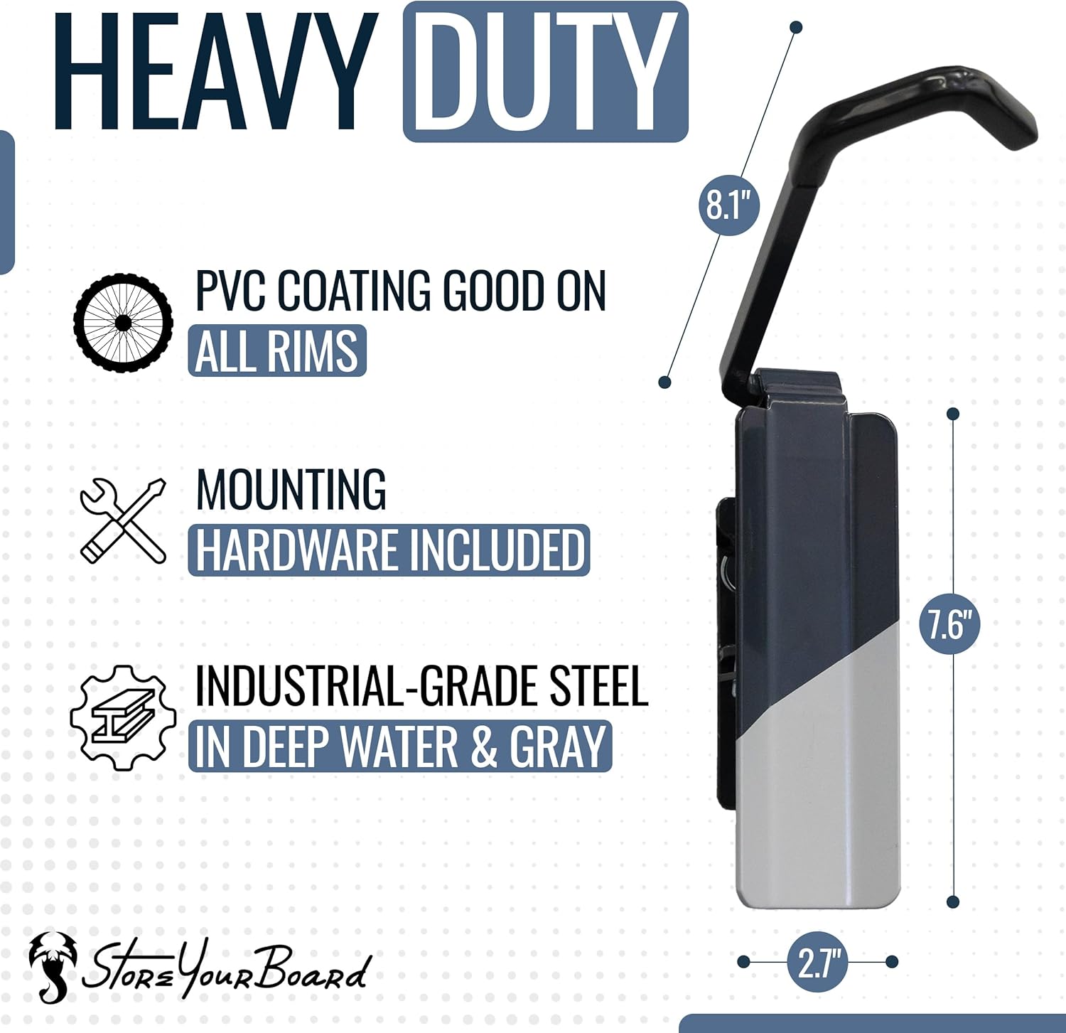 Maximize your garage, shed, or apartment space with the StoreYourBoard Swivel Bike Wall Mount. This space-saving vertical bike rack securely mounts to wall studs and holds your bike flat against the wall, making it ideal for indoor storage in tight spaces. It accommodates a variety of bikes, including road bikes, e-bikes, folding bikes, kids’ bikes, and BMX, with tires up to 2.6″ wide and 29″ in diameter.