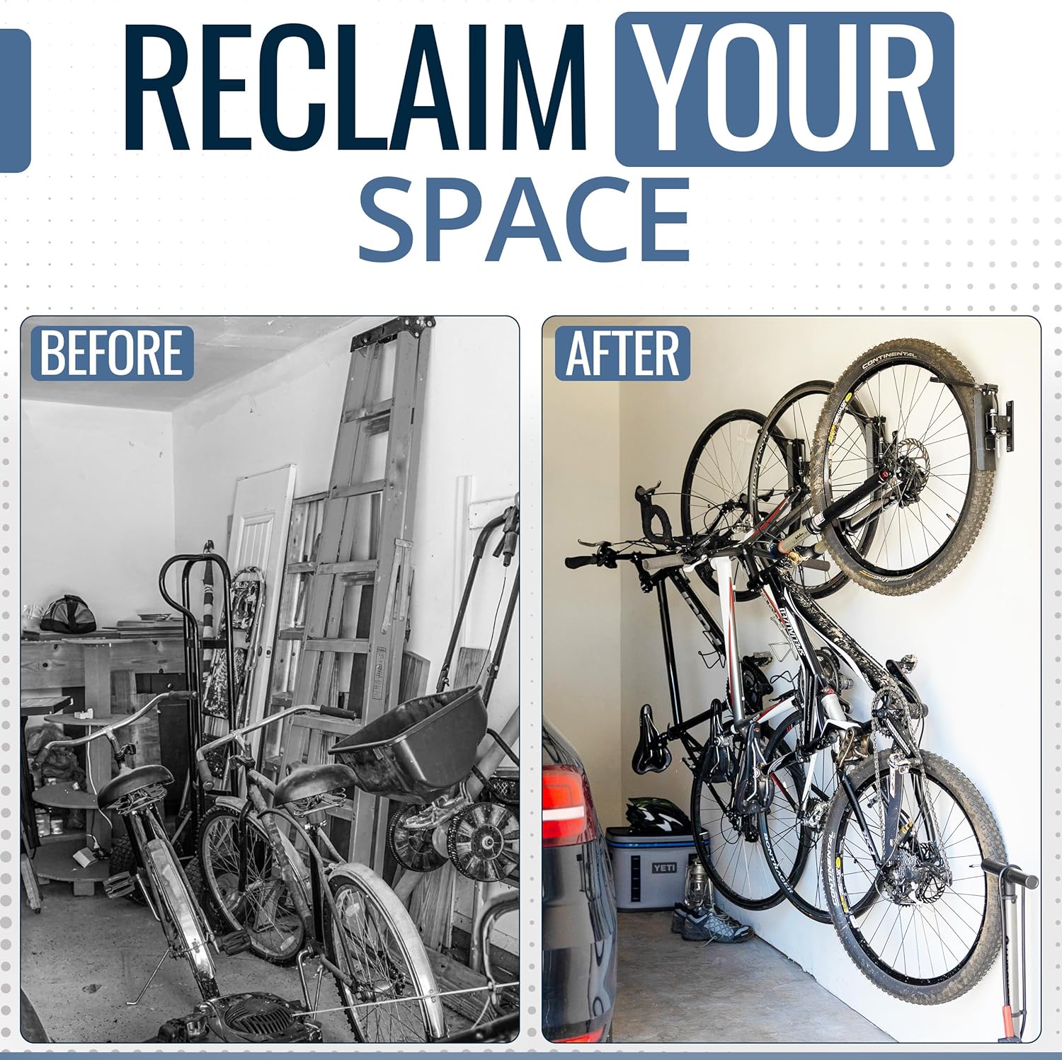 Space-Saving Garage Bike Rack with 120° Swing & Stopper